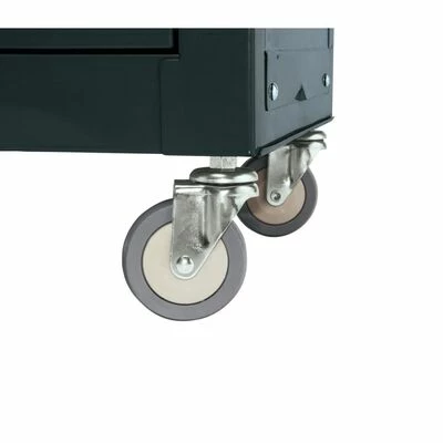 Le mécanisme de verrouillage central permet de verrouiller tous les tiroirs à la fois. Cela les empêche de s’ouvrir accidentellement lorsque le chariot à outils est déplacé. Il est fabriqué en tôle d’acier avec une finition enduite de poudre et une garniture à effet d’aluminium. Les tiroirs sont également équipés de glissières à roulement à billes pour un fonctionnement plus lisse.