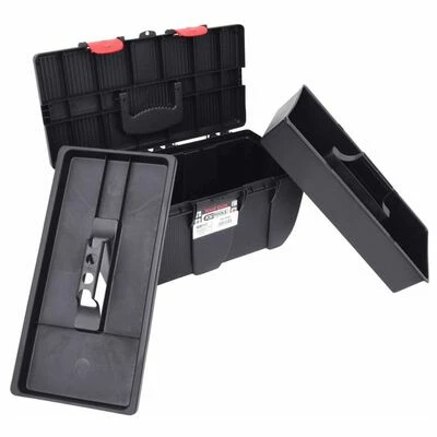 Cette boîte à outils comprend 2 plateaux amovibles pour les petites pièces, et a une capacité allant jusqu’à 10 kg.