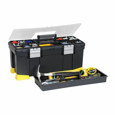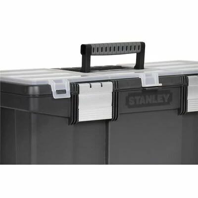 Cette boîte à outils de 22 pouces de la marque Stanley avec organiseur pleine grandeur a des pieds absorbant les chocs pour une protection ultime de l’équipement à l’intérieur. Les loquets en aluminium sont antirouille et durables.