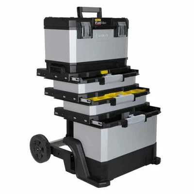 Il procure une large base de stockage, qui est parfait pour les outils de électrique et les marteaux de club etc. Et il est aussi livré avec un système tiroir pour un accès simple à tous les outils à tous les niveaux de ce coffre à outil mobile. Cet atelier de travail Stanley est équipé de roues robustes testées sur route pour la durbilité et la stabilité, tandis que la poignée extensible offre à l’utilisateur une manoeuvre facile. Stanley a équipé de verrous en métal à l’atelier de travail, qui a été conçu pour durer. Cet atelier mobile une caractéristique supplémentaire qui est celle d’une boîte à outil au dessus avec un plateau en plastique amovible de haute qualité pour les petits outils. Il s’insère facilement dans le couvercle rabattable.