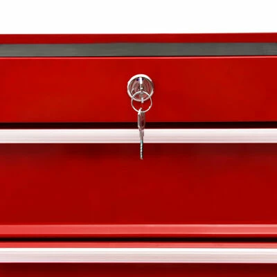 Fabriqué en acier robuste, le chariot à outils d’atelier a une construction robuste et durable. Grâce aux serrures intégrées, les tiroirs peuvent être verrouillés immédiatement pour éviter qu’ils ne s’ouvrent accidentellement lorsque le chariot est déplacé. Chaque tiroir est doté d’un fond antidérapant pour garder vos outils en place. Le comptoir robuste de la boîte à outils est un endroit idéal pour garder les outils fréquemment utilisés à portée de main. Avec quatre roulettes pivotantes, dont deux ont des freins, le chariot peut être déplacé facilement. Deux poignées latérales pratiques permettent de pousser le chariot.