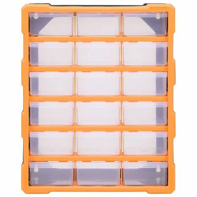 Ce meuble de rangement contient 18 tiroirs centraux pour répondre à vos besoins quotidiens. Il garde vos outils à main et accessoires comme les fixations organisés et à portée de main. L’armoire à outils est fabriquée en plastique résistant aux chocs, qui est à la fois durable et stable. Les tiroirs sont en plastique transparent afin que vous puissiez identifier rapidement le contenu. Cette boîte de bricolage est idéale pour ranger les écrous, les boulons, les vis, les clous, les fixations générales et les composants.