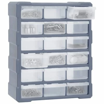 Ce meuble de rangement contient 18 tiroirs centraux pour répondre à vos besoins quotidiens. Il garde vos outils à main et accessoires comme les fixations organisés et à portée de main. L’armoire à outils est fabriquée en plastique résistant aux chocs, qui est à la fois durable et stable. Les tiroirs sont en plastique transparent afin que vous puissiez identifier rapidement le contenu. Cette boîte de bricolage est idéale pour ranger les écrous, les boulons, les vis, les clous, les fixations générales et les composants.