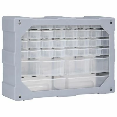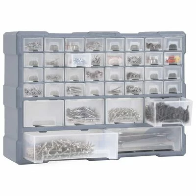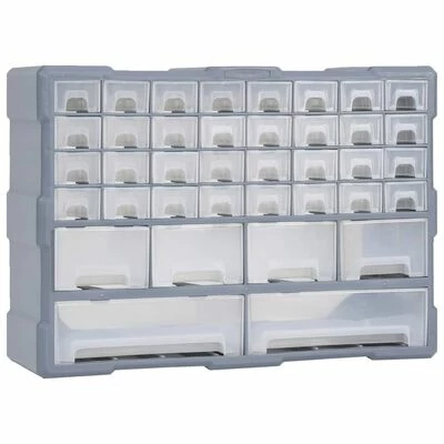Ce meuble de rangement contient 34 petits tiroirs, 4 tiroirs de taille moyenne et 2 grands tiroirs pour répondre à vos différents besoins. Il garde vos outils à main et accessoires comme les fixations organisés et à portée de main. L’armoire à outils est fabriquée en plastique résistant aux chocs, qui est à la fois durable et stable. Les tiroirs sont en plastique transparent afin que vous puissiez identifier rapidement le contenu. Cette boîte de bricolage est idéale pour ranger les écrous, les boulons, les vis, les clous, les fixations générales et les composants.