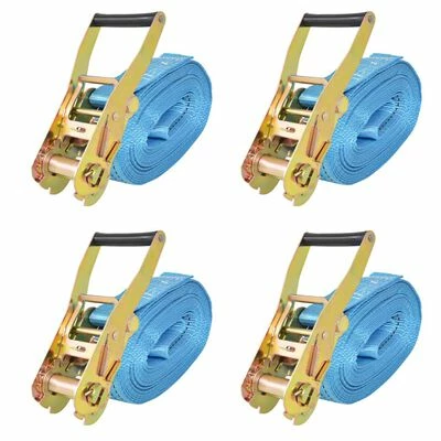 Les sangles solides et robustes sont fabriquées en polyester de haute qualité et ont une capacité de charge de 4 tonnes chacune. Les sangles d’arrimage ont été fabriquées pour répondre à la norme européenne EN-12195-2. En outre, elles sont équipées de cliquets faciles à utiliser et à dégagement rapide pour maintenir le serrage pendant le transport afin de garantir que les charges restent en place.