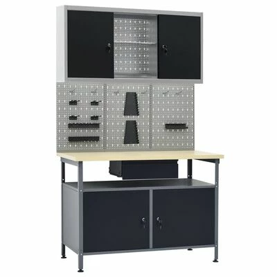 Cet ensemble est combiné avec 1 établi, 3 panneaux muraux et 1 armoire murale, qui seront une solution de rangement pratique pour votre atelier et votre garage.