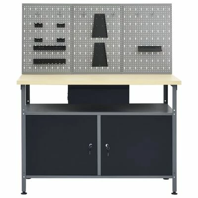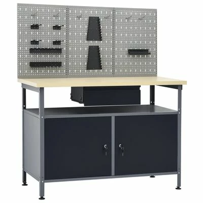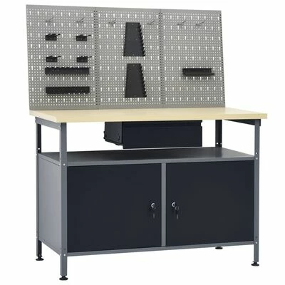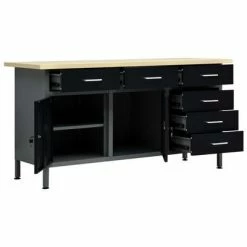 L’établi robuste, se distingue par un grand espace de stockage et une capacité de chargement de 300 kg. Cet établi possède un compartiment ouvert équipé d’un tiroir, vous permettant de bien organiser vos outils, pièces et accessoires tels que vis, clous et ruban adhésif. Il y a 2 étagères et un grand compartiment avec 2 portes verrouillables pour accueillir facilement les perceuses, les tambours de câble et les meuleuses. De plus, les pieds sont réglables en hauteur. Ce poste de travail est fabriqué à partir d’acier et de panneaux de particules de première qualité, ce qui le rend très robuste, durable et facile à nettoyer. C’est facile à assembler.